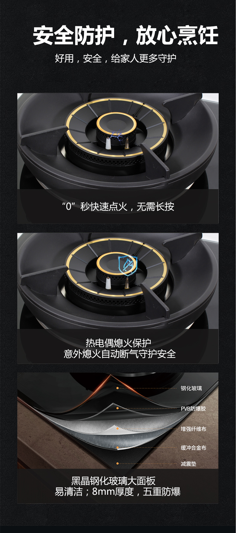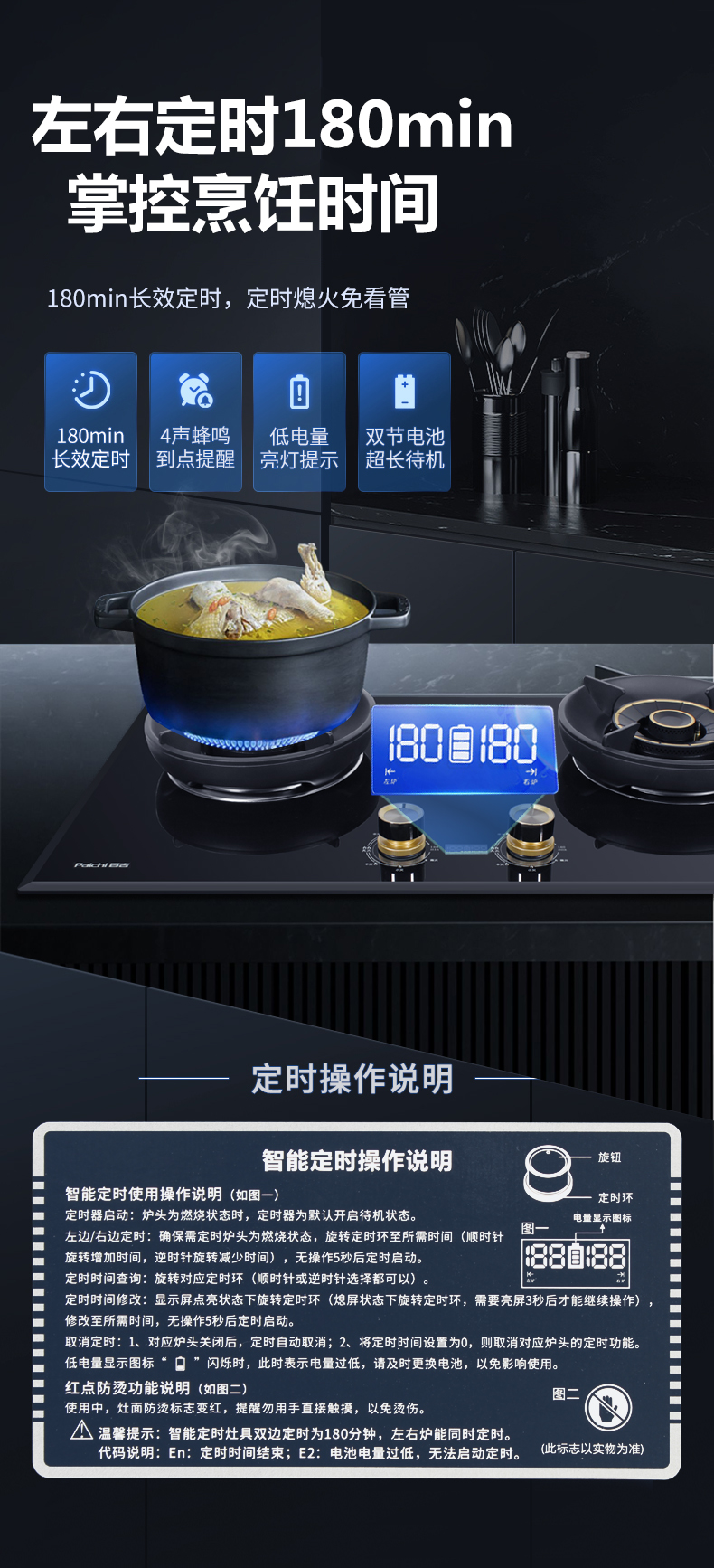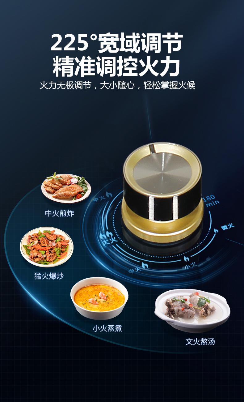 5.2kW聚能火焰,70%熱效率,180分鐘 定時(shí)烹飪